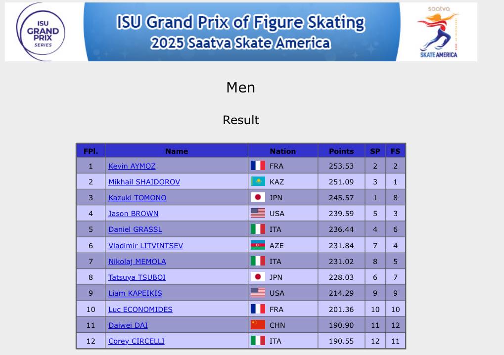 Прокатом коротких программ мужчины продолжили соревнования 5-го этапа Гран-при США по фигурному катанию Skate America в американском Лейк-Плэсиде.