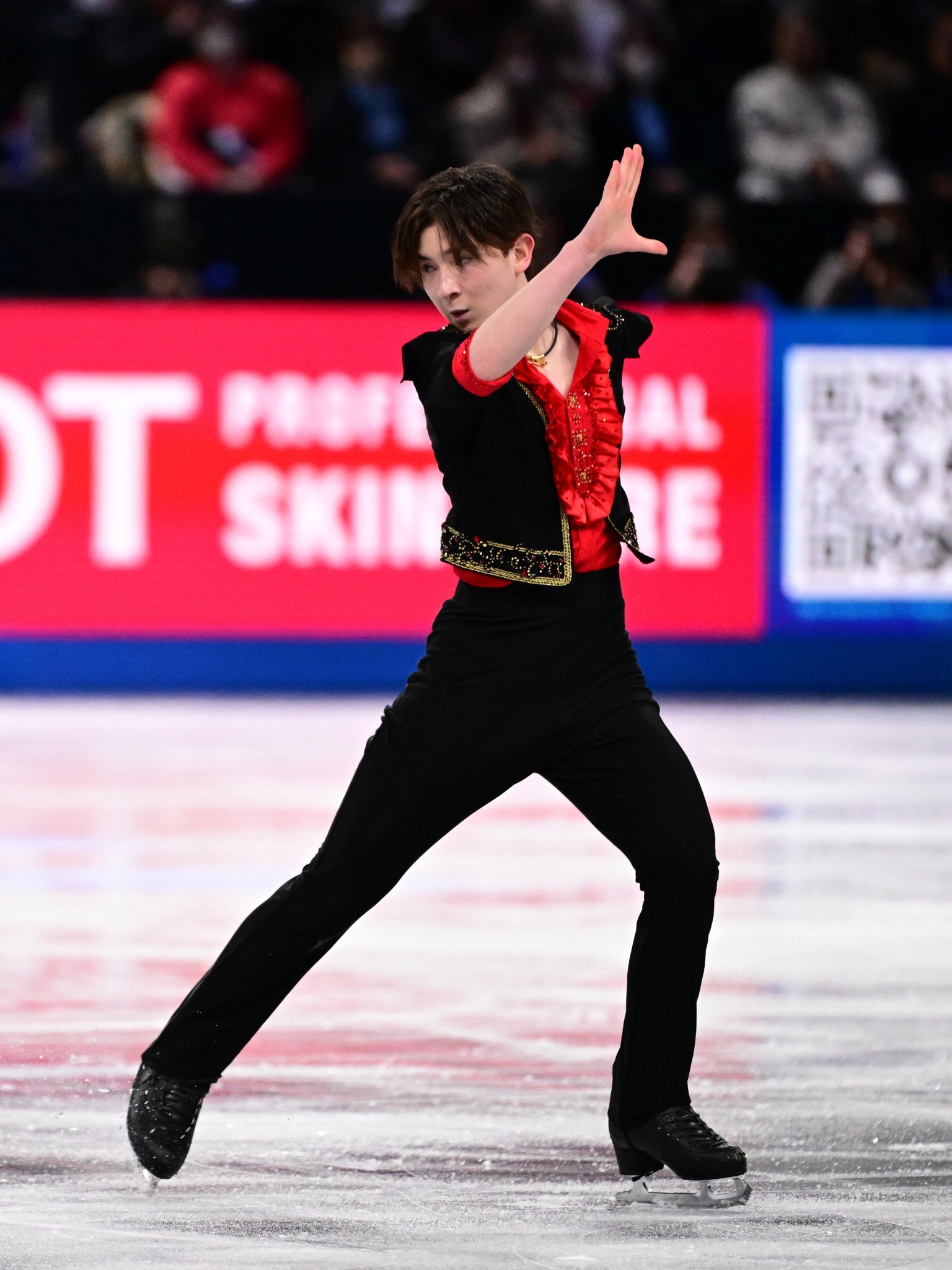Японец Рио Наката (Rio NAKATA) лидирует после зрелищной дуэли на льду со своим основным соперником за золото турнира, (86.48).