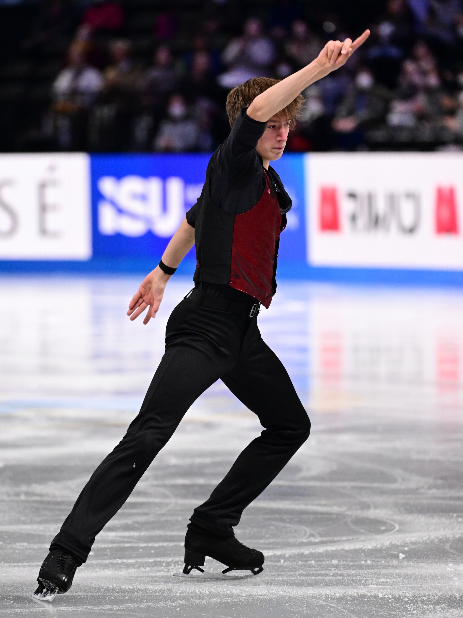 Фигурист из Бельгии Денис Круглов (Denis KROUGLOV) – третий, (74.29).