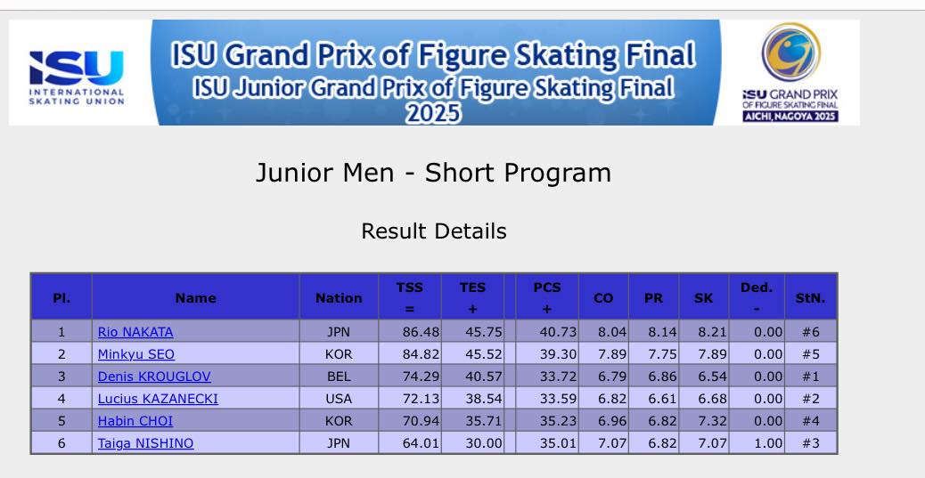 Фигурист из Южной Кореи Мин Гю Со (Minkyu SEO) – второй, (84.82), хоть и проиграл в короткой Рио Наката (Rio NAKATA), но покорил всех своей музыкальностью: смена вращений, каждое движение четко в такт музыки!