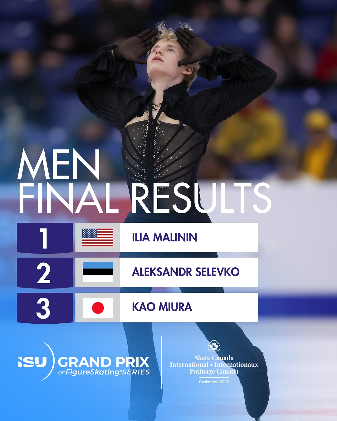 Американец Илья Малинин (Ilia MALININ) победил на 3-м этапе Гран-при в Саскатуне, Канаде, (333.81).