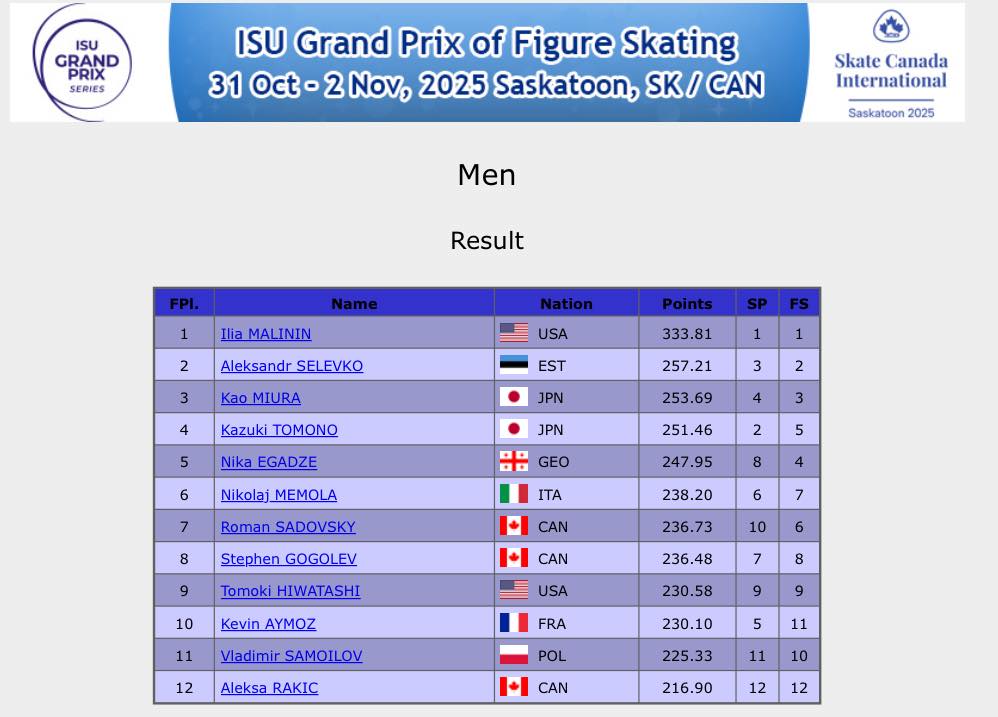 Гран-при, Skate Canada 2025, Саскатун, Канада. Мужчины, короткая программа