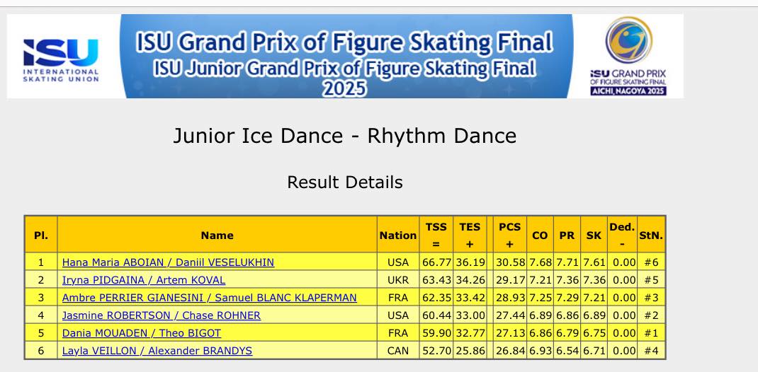 В японской Нагое спортивные пары открыли соревнования финала Гран-при по фигурному катанию сезона 2025/26 среди взрослых.