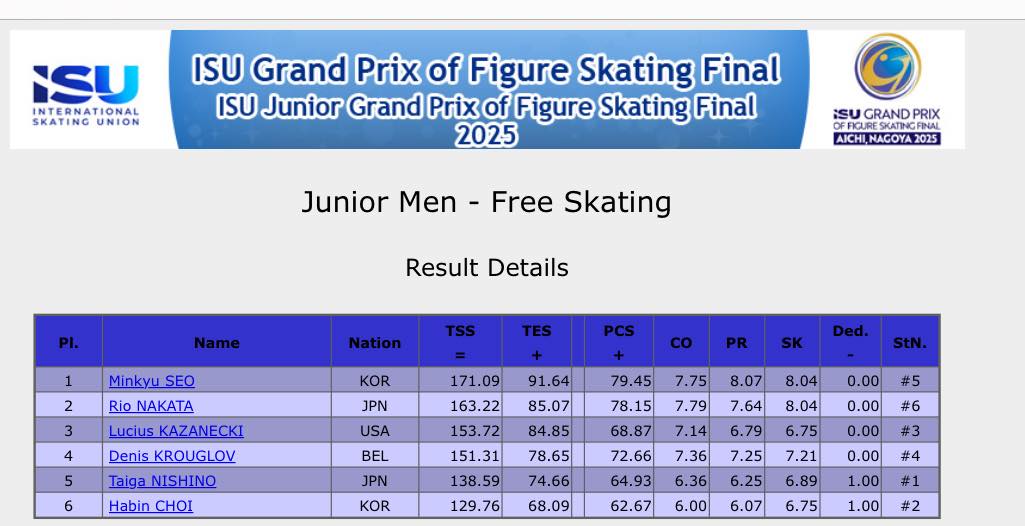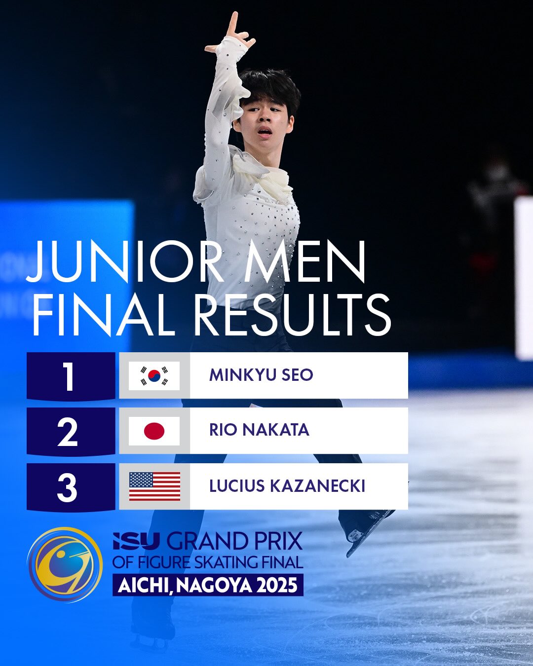 Фигурист из Южной Кореи Мин Гю Со (Minkyu SEO) прибрел титул и стал обладателем золотой медали, (255,91). Четверной сальхов (4S), два трикселя (3А), один из которых в каскаде (3А-3T), и такая знакомая манера катания! Ну, конечно же, его тренирует сам Патрик Чан, знаменитый “бог скольжения” из Канады, которого мне посчастливилось увидеть на финале Гран-при в Барселоне в 2016! Как же это приятно видеть бывших кумиров в роли тренеров, и болеть за их талантливых учеников!