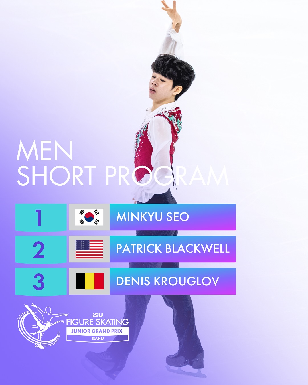 На 5-м этапе Гран-при по фигурному катанию среди юниоров в Баку, Азербайджане после короткой программы лидирует фигурист из Южной Кореи Мин Гю Со (Minkyu SEO), (82,67).