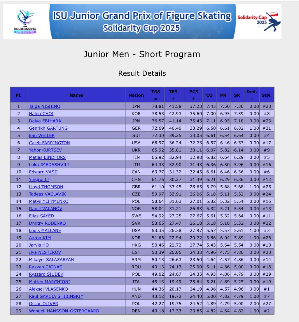 Гран-при, юниоры, 2025, Гданьск, Польша. Юноши, короткая программа