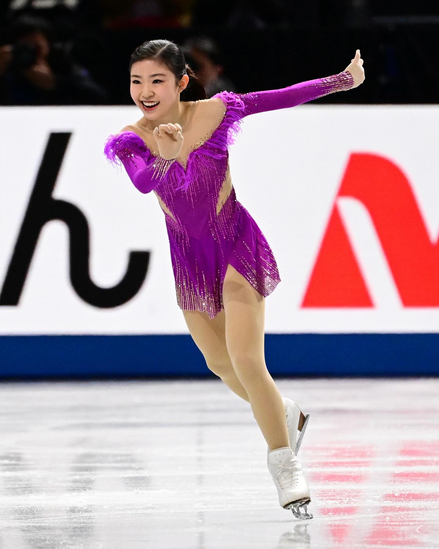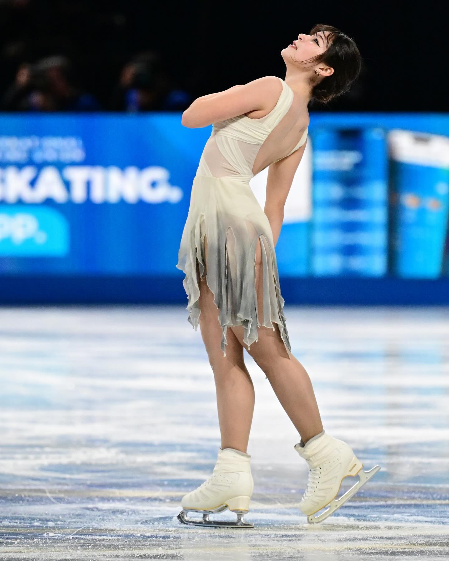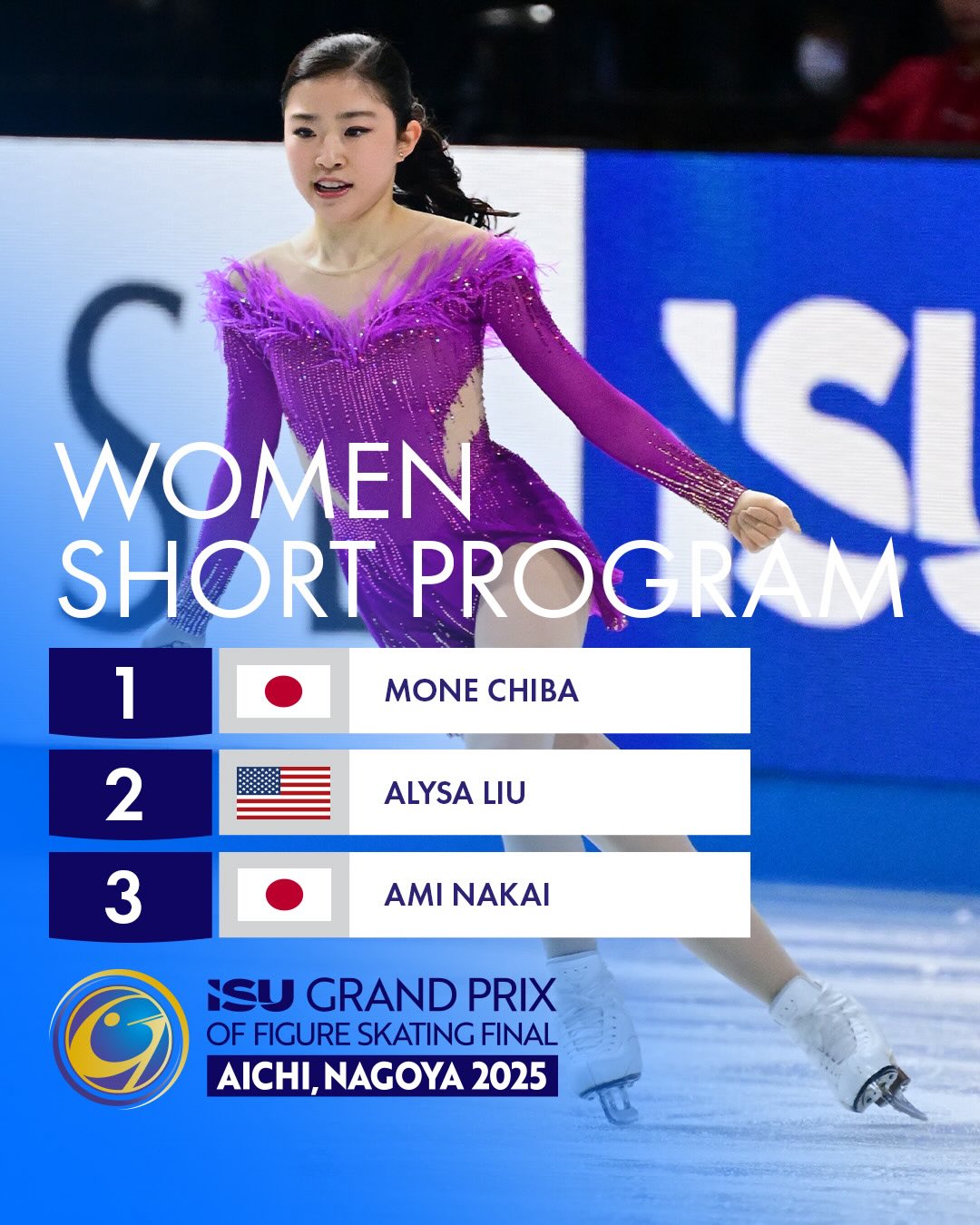 Японская фигуристка Моне Чиба (Mone CHIBA) выиграла короткую программу в финале Гран-при по фигурному катанию среди взрослых в Нагое, Японии, (77,27).
