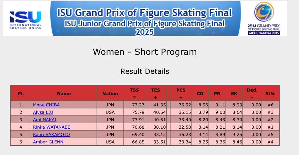 В японской Нагое спортивные пары открыли соревнования финала Гран-при по фигурному катанию сезона 2025/26 среди взрослых.