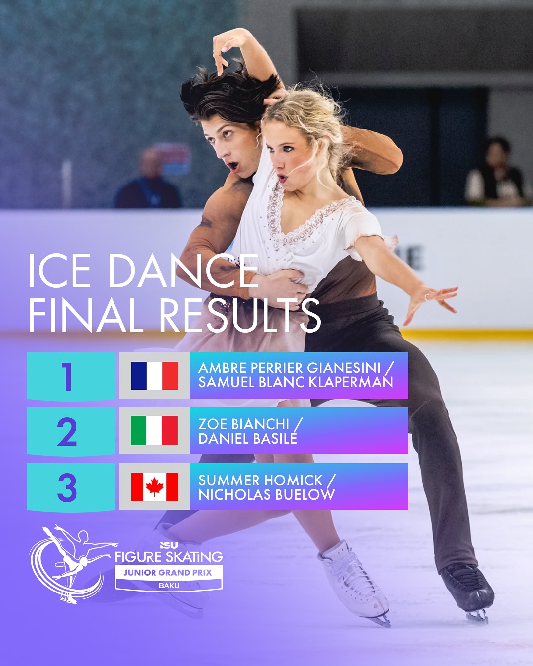 Французы Амбр Перрье-Джанезини и Самюэль Бланк-Клаперман (Ambre PERRIER GIANESINI / Samuel BLANC KLAPERMAN) завоевали золотые медали турнира, (162,21). Вполне заслуженно!