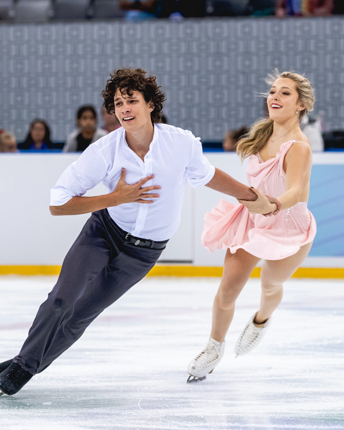 Фигуристы из Италии Зои Бьянки и Даниэль Базиль (Zoe BIANCHI / Daniel BASILE) – третьи, (56,54). Зои – красавица! Носочки все дотянуты! Сразу видно, что танцорша!
