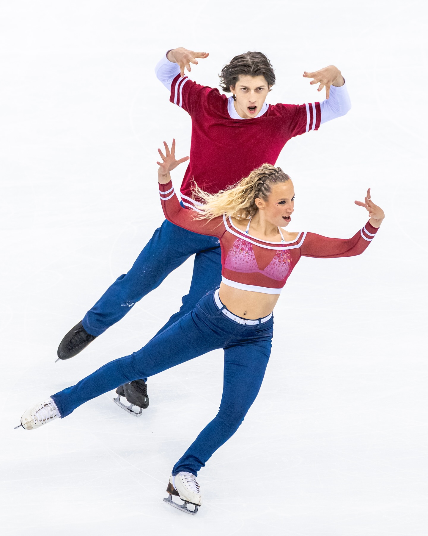 Соревнования третьего дня 6-го этапа Гран-при среди юниоров в Гданьске открыли танцоры на льду.