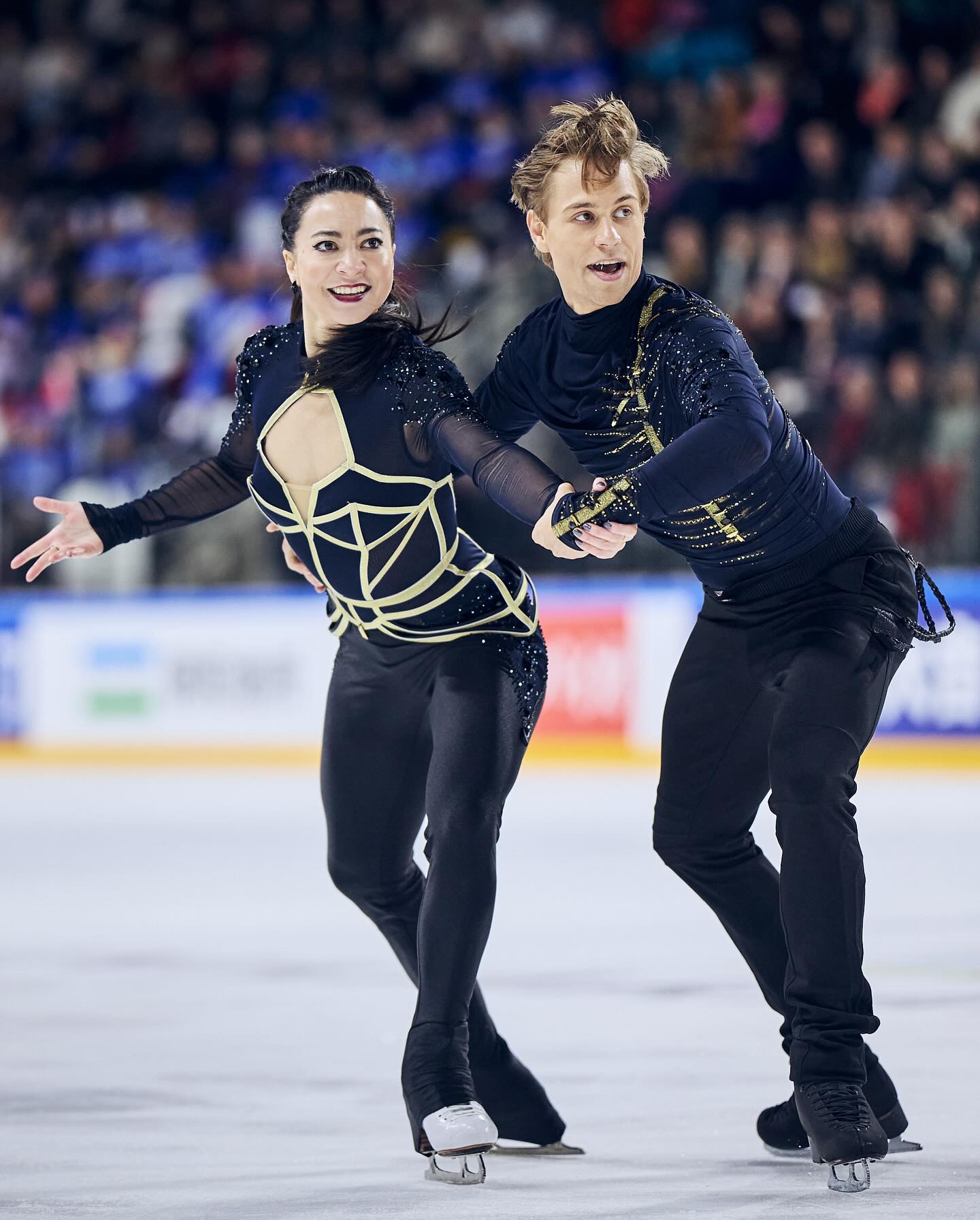 Фигуристы из Великобритании Лайла Фир и Льюис Гибсон (Lilah FEAR / Lewis GIBSON) с серебром вторые, (210.24). Меньше балла уступили они французам по сумме двух танцев на льду, и были восхитительны в произвольном танце!