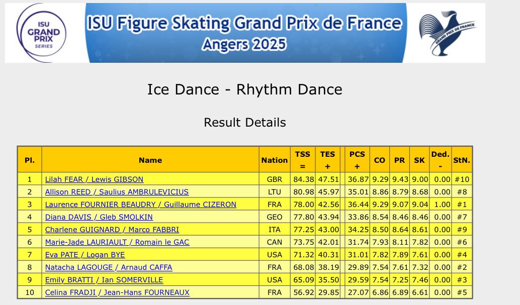 Во французском Анже стартовал 1-й из 6-ти этапов Гран-при по фигурному катанию Grand Prix de France. Количество участников в каждой дисциплине – минимальное, одиночников только 12 (это вам не 38, как было на этапах у юниоров), спортивных пар – 8, танцевальных дуэтов – 10.