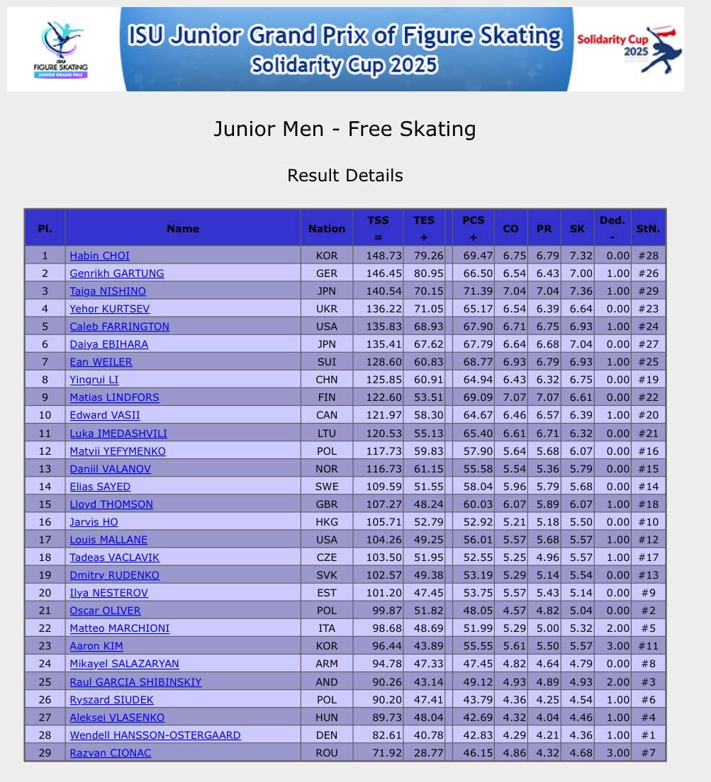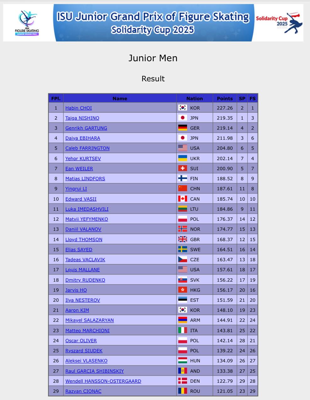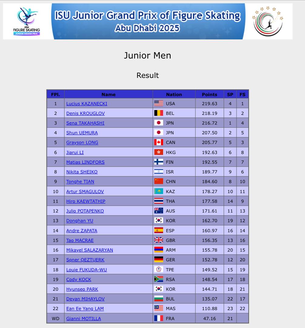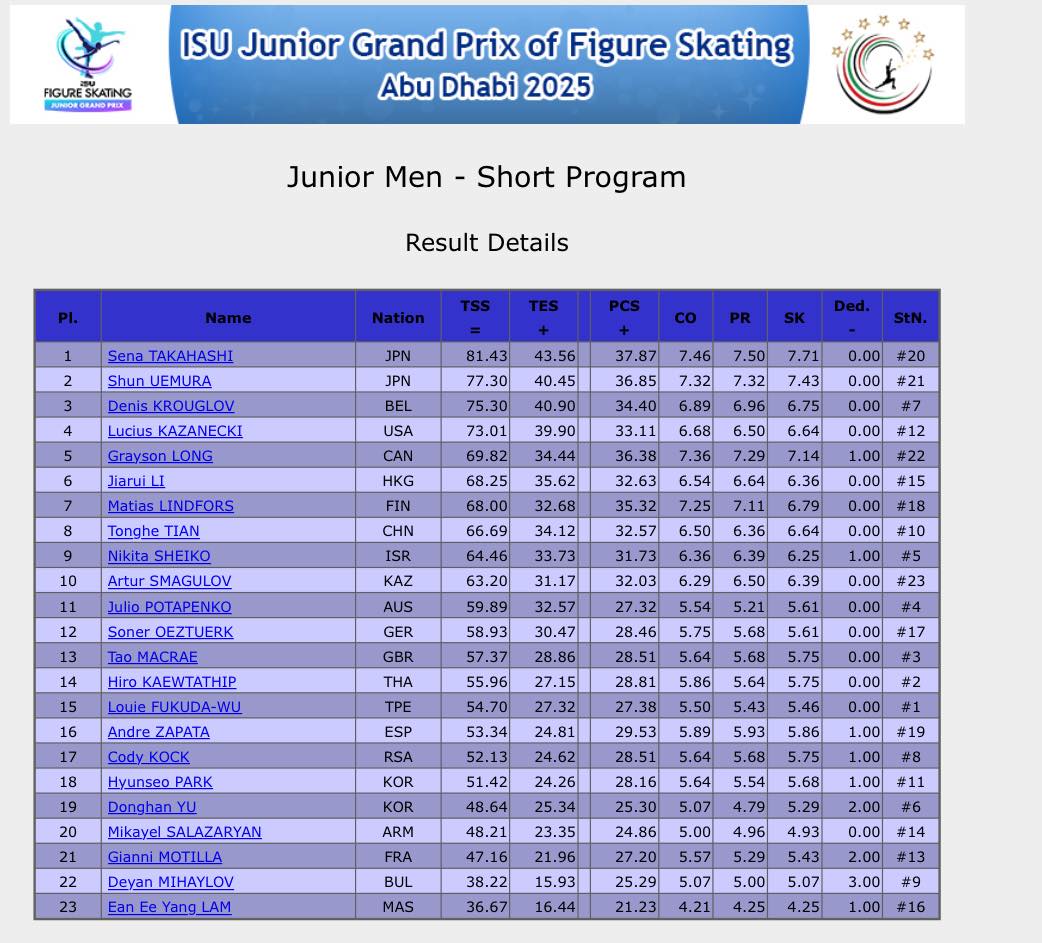 Гран-при, юниоры, 2025, Абу-Даби,ОАЭ. Юноши, короткая программа