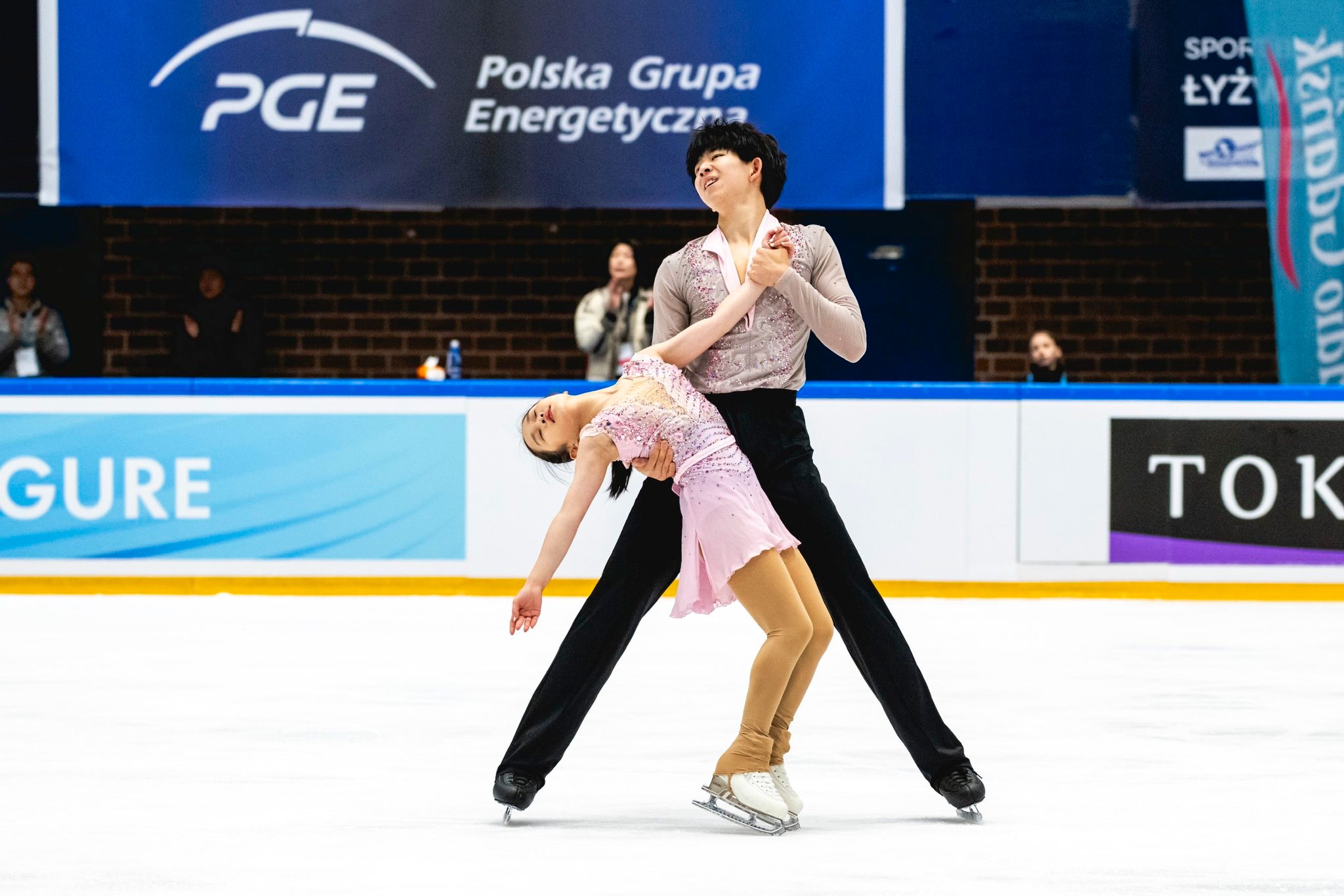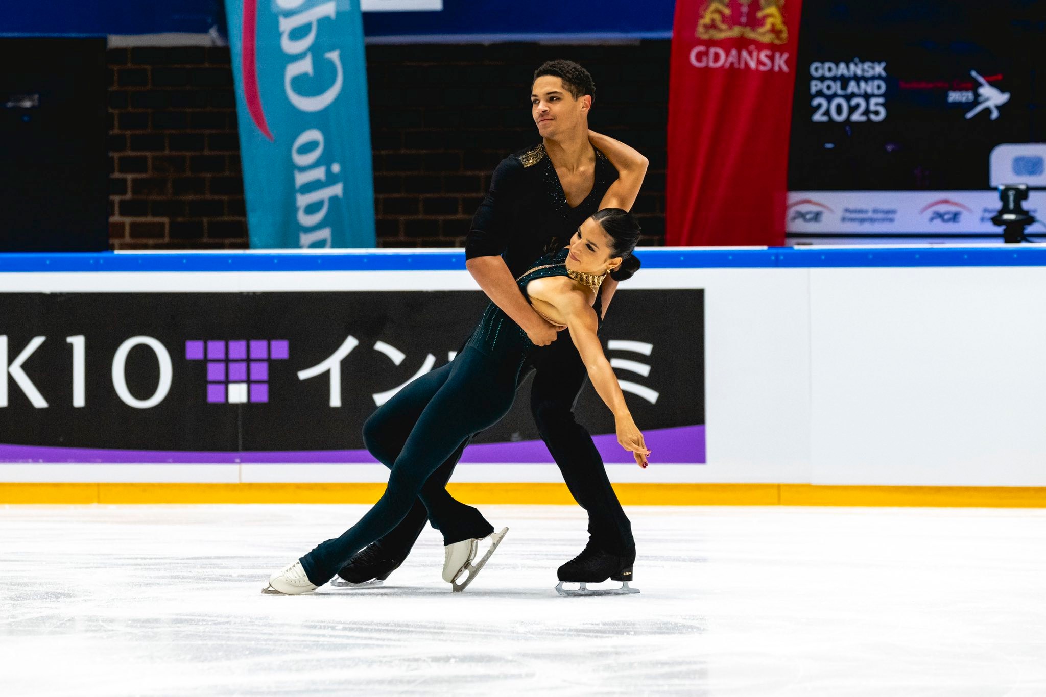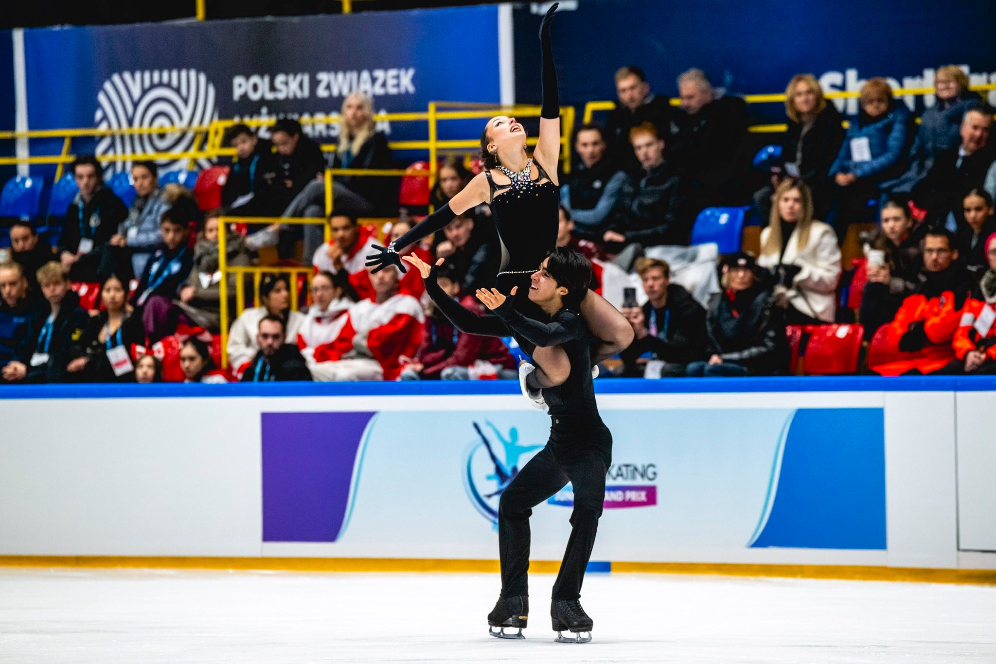 Соревнования третьего дня 6-го этапа Гран-при среди юниоров в Гданьске открыли танцоры на льду.
