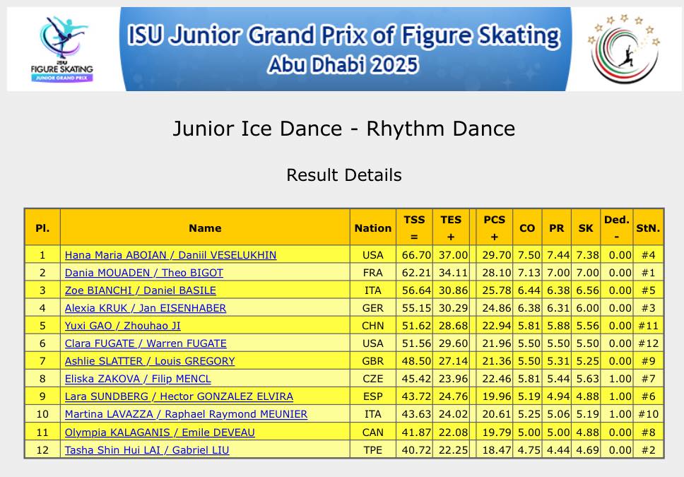 Гран-при, юниоры, 2025, Абу-Даби,ОАЭ. Танцы на льду. Ритм-танец
