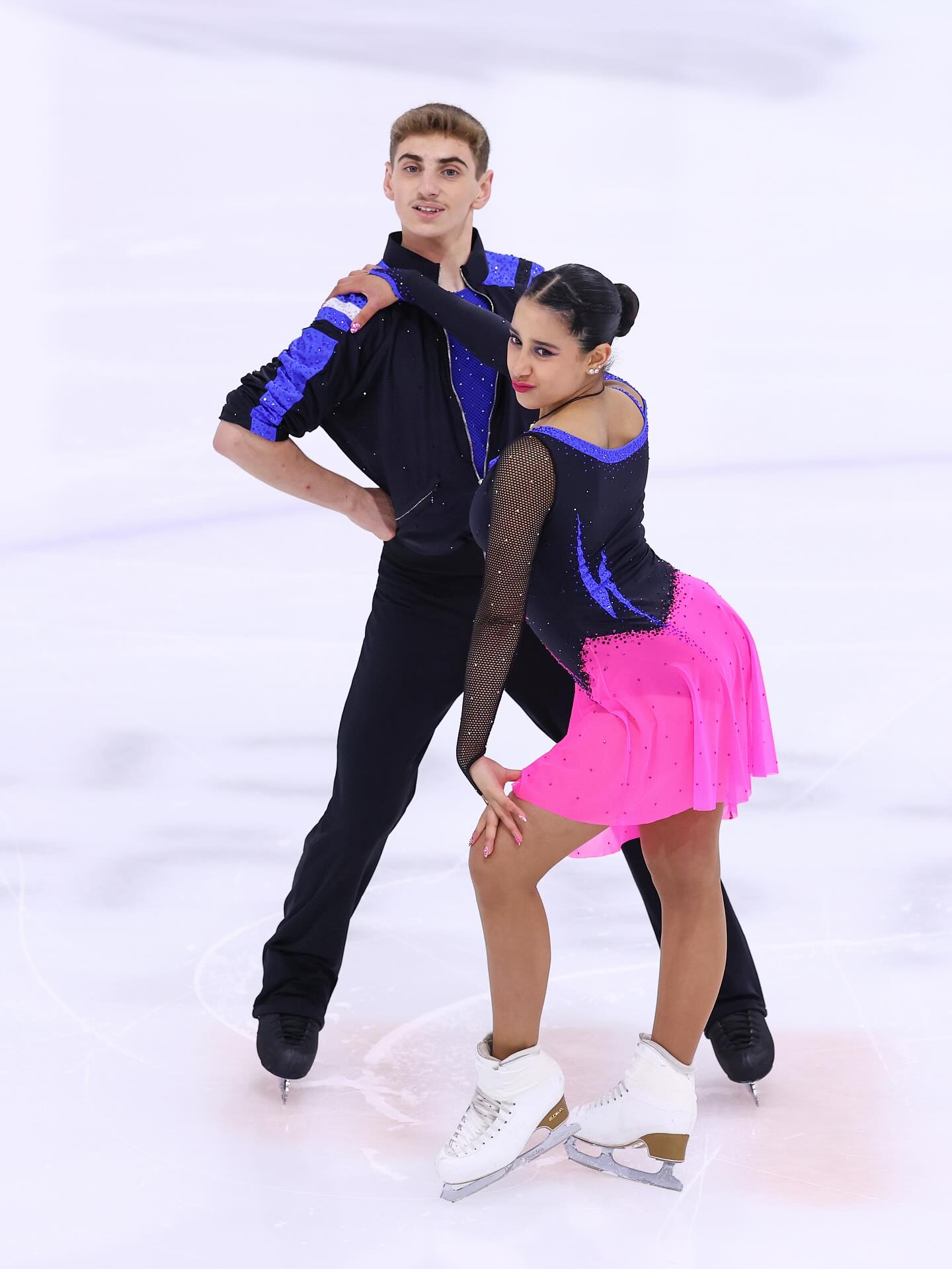 Фигуристы из Италии Зои Бьянки и Даниэль Базиль (Zoe BIANCHI / Daniel BASILE) – третьи, (56,54). Зои – красавица! Носочки все дотянуты! Сразу видно, что танцорша!
