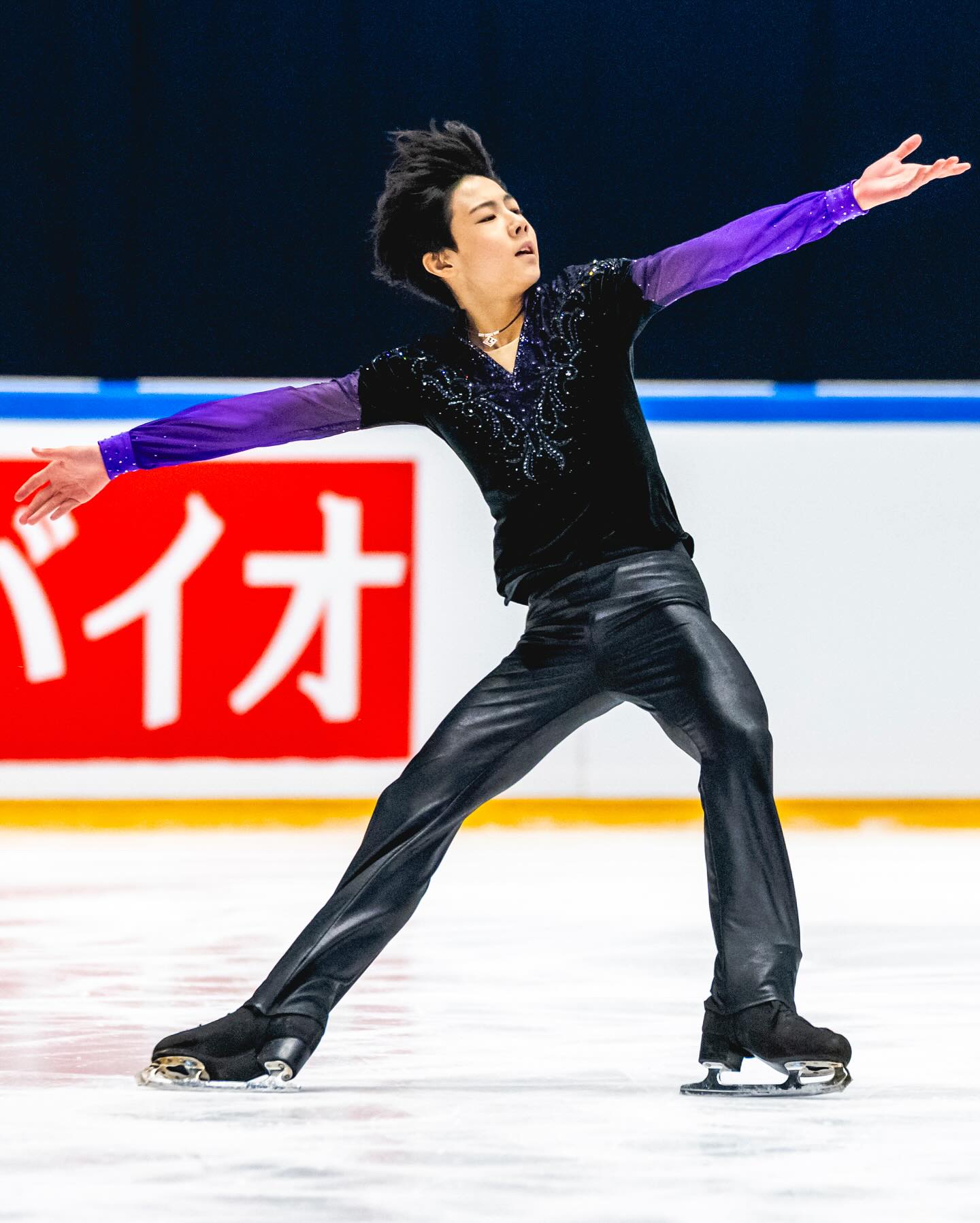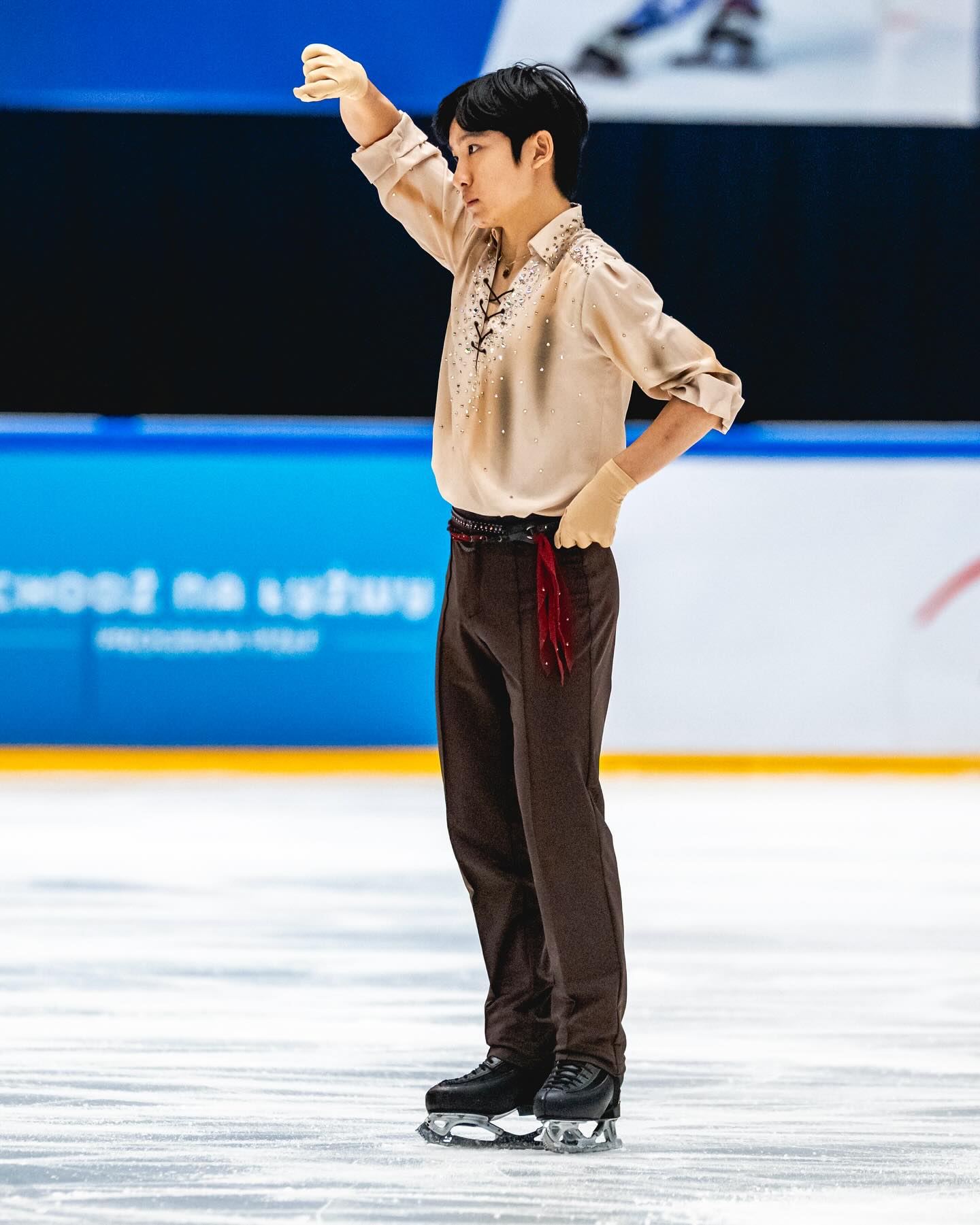 Его соотечественник Шун Уэмура (Shun UEMURA) – второй, (77,30). Зажигательная короткая программа у Шуна, хорошая скорость скольжения и очень выразительные руки! Но над выездами с прыжков еще стоит поработать.