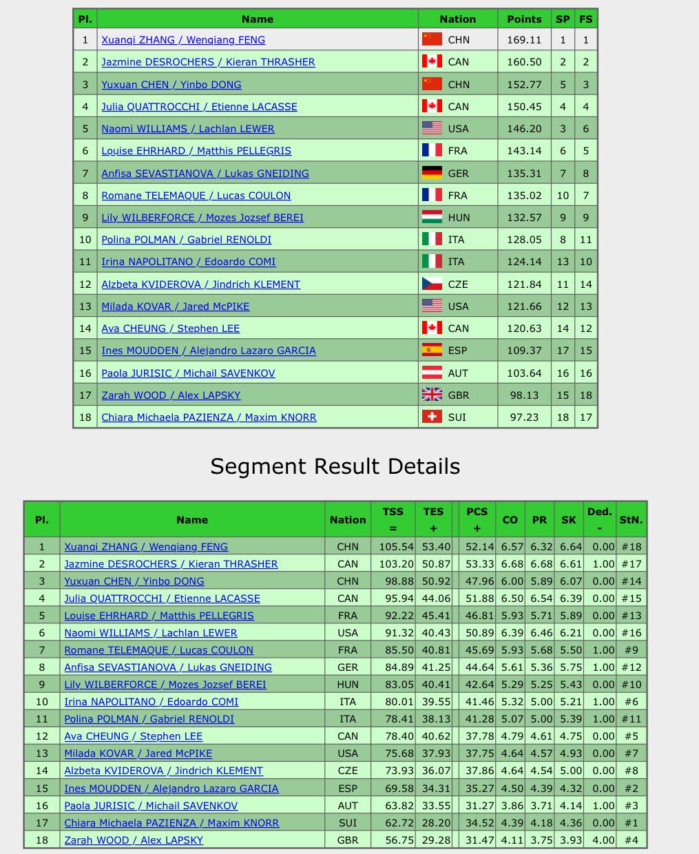Китайцы Чэнь Юйсюань – Дун Иньбо (Yuxuan CHEN / Yinbo DONG ) смогли подняться с пятого на третье место и стать обладателями бронзовых медалей, молодцы! (152,77).