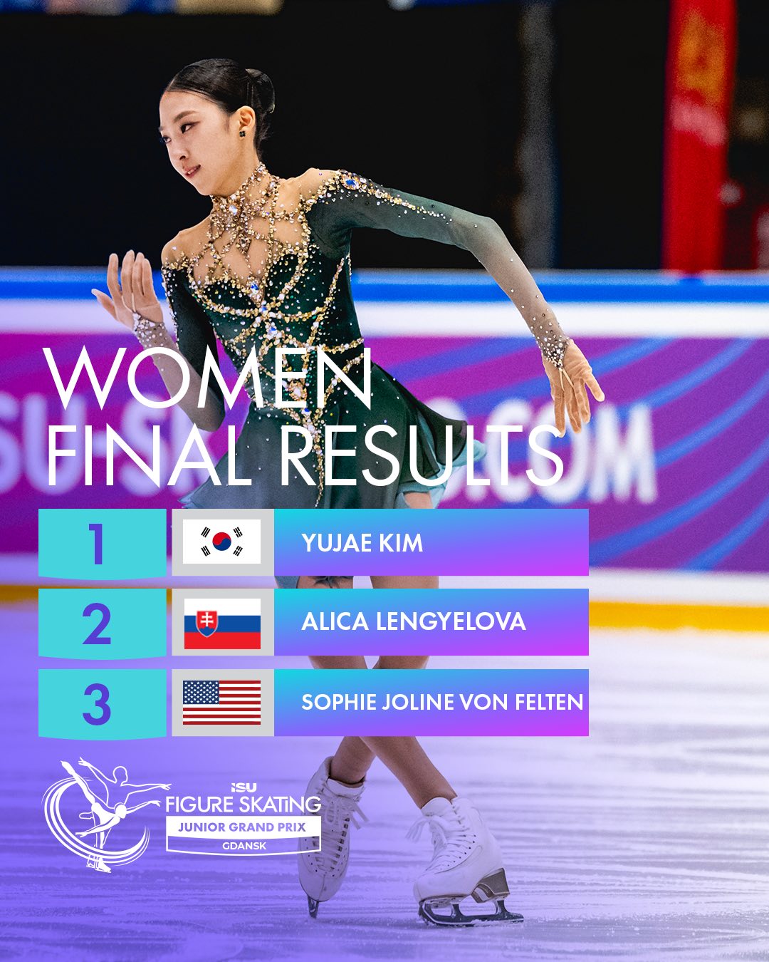 В польском Гданьске на 6-м этапе Гран-при среди юниоров по фигурному катанию девушки разыграли свой комплект медалей турнира.Фигуристка из Южной Кореи Ким Ю Чжэ (Yujae KIM) – завоевала золото, (199,86).