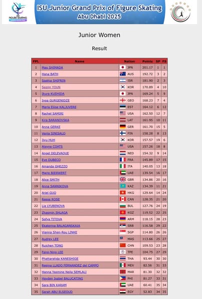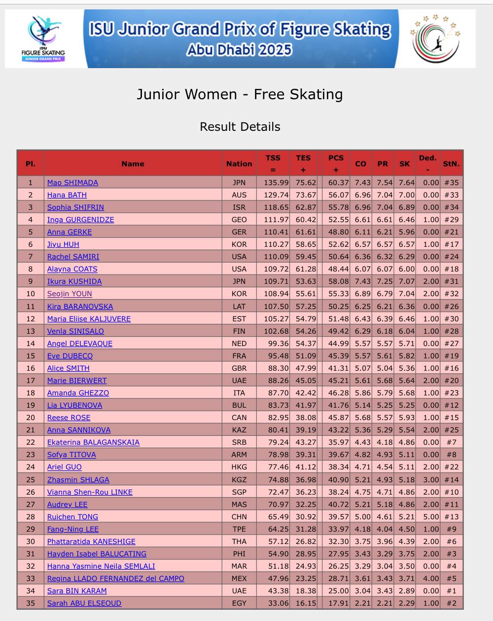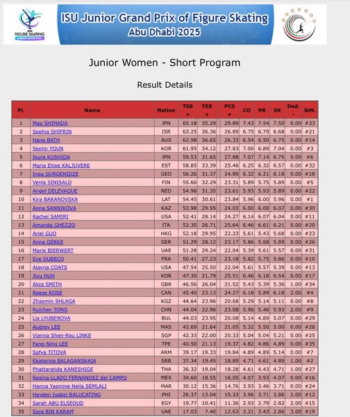 Гран-при, юниоры, 2025, Абу-Даби,ОАЭ. Девушки, короткая программа