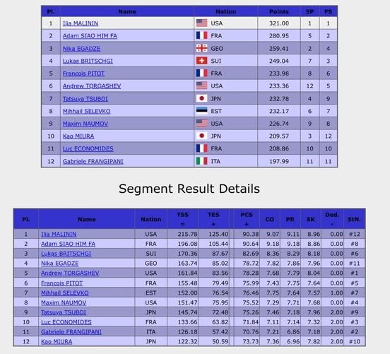 Француз Адам Сяо Хим Фа (Adam SIAO HIM FA) с серебром на втором месте, (280.95). Адам сначала чуть не довел болельщиков до инфаркта срывом своей короткой программы, а после его проката произвольной многие побежали с радости пить коньяк! И неудивительно, ему удалось подняться с 5-го места на второе! Мне кажется, что он все еще никак не восстановится после прошлой серьезной травмы, и похоже, что не только физически.