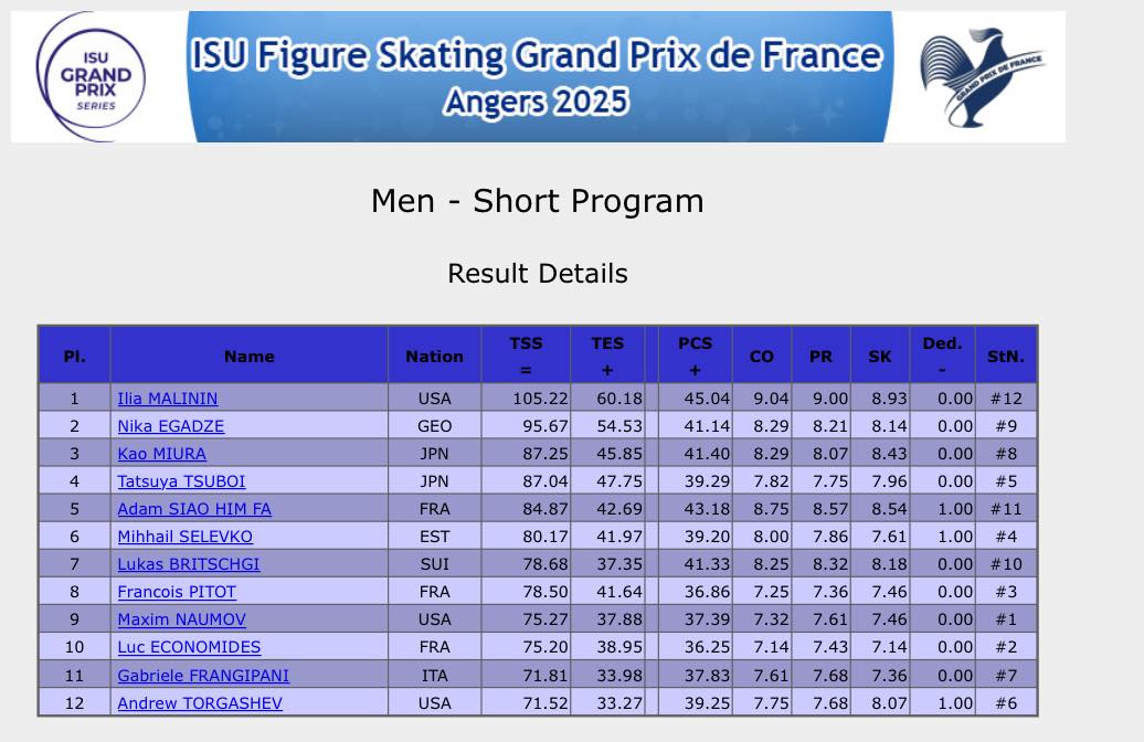 Гран-при, Grand Prix de France 2025, Анже, Франция. Мужчины, короткая программа