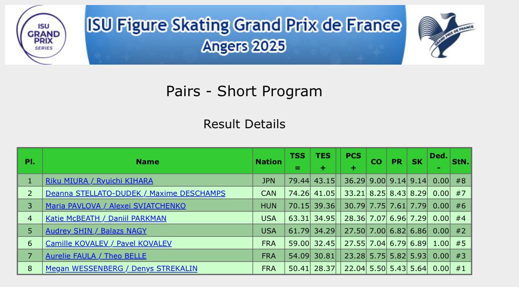 Гран-при, Grand Prix de France 2025, Анже, Франция. Пары, короткая программа