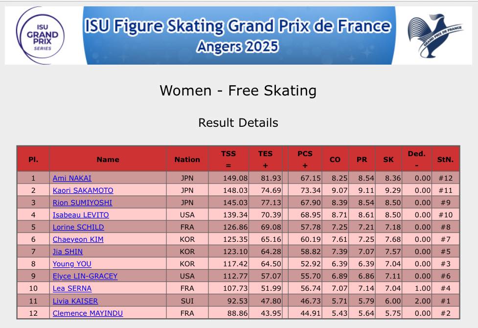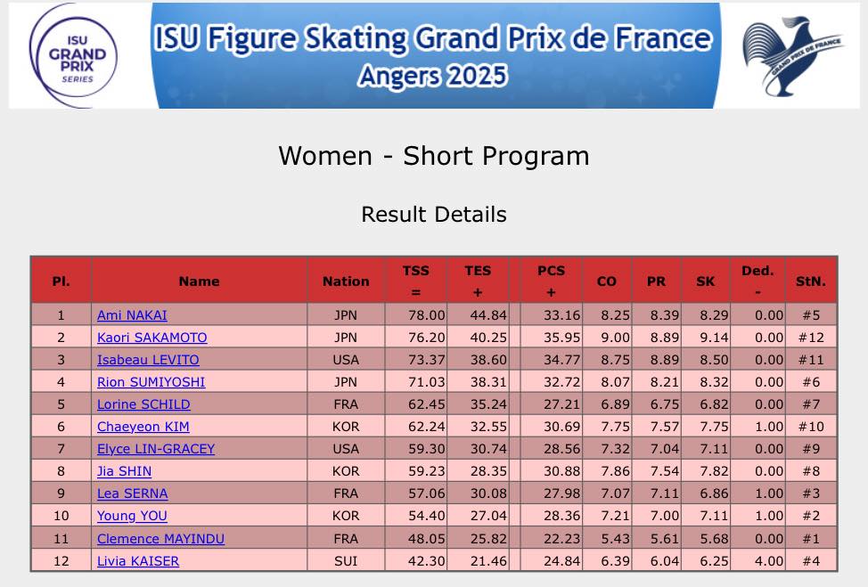 Гран-при, Grand Prix de France 2025, Анже, Франция. Женщины, короткая программа