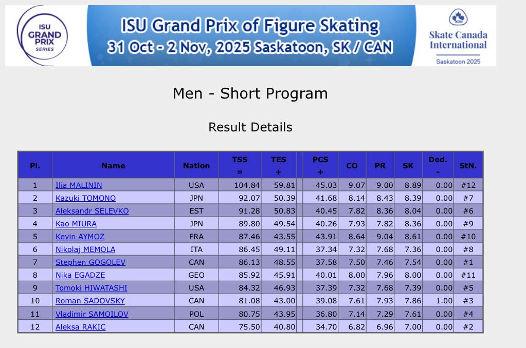 Гран-при, Skate Canada 2025, Саскатун, Канада. Мужчины, короткая программа