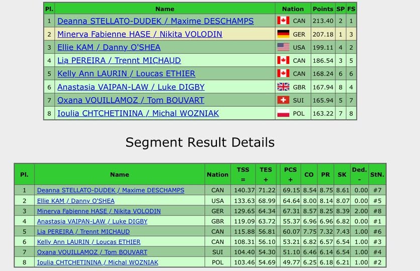 Канадцы Деанна Стеллато-Дудек и Максим Дешам (Deanna STELLATO-DUDEK / Maxime DESCHAMPS) – вторые, (73.03).