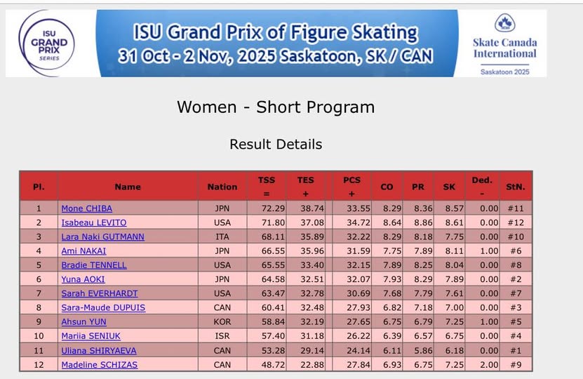 Гран-при, Skate Canada 2025, Саскатун, Канада. Женщины, короткая программа