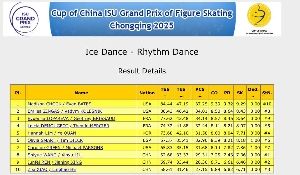 Гран-при, Cup of China, 2025, Чунцин, Китай. Танцы на льду, ритм-танец