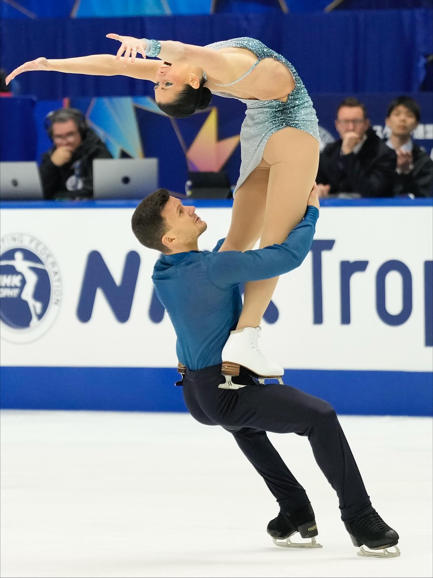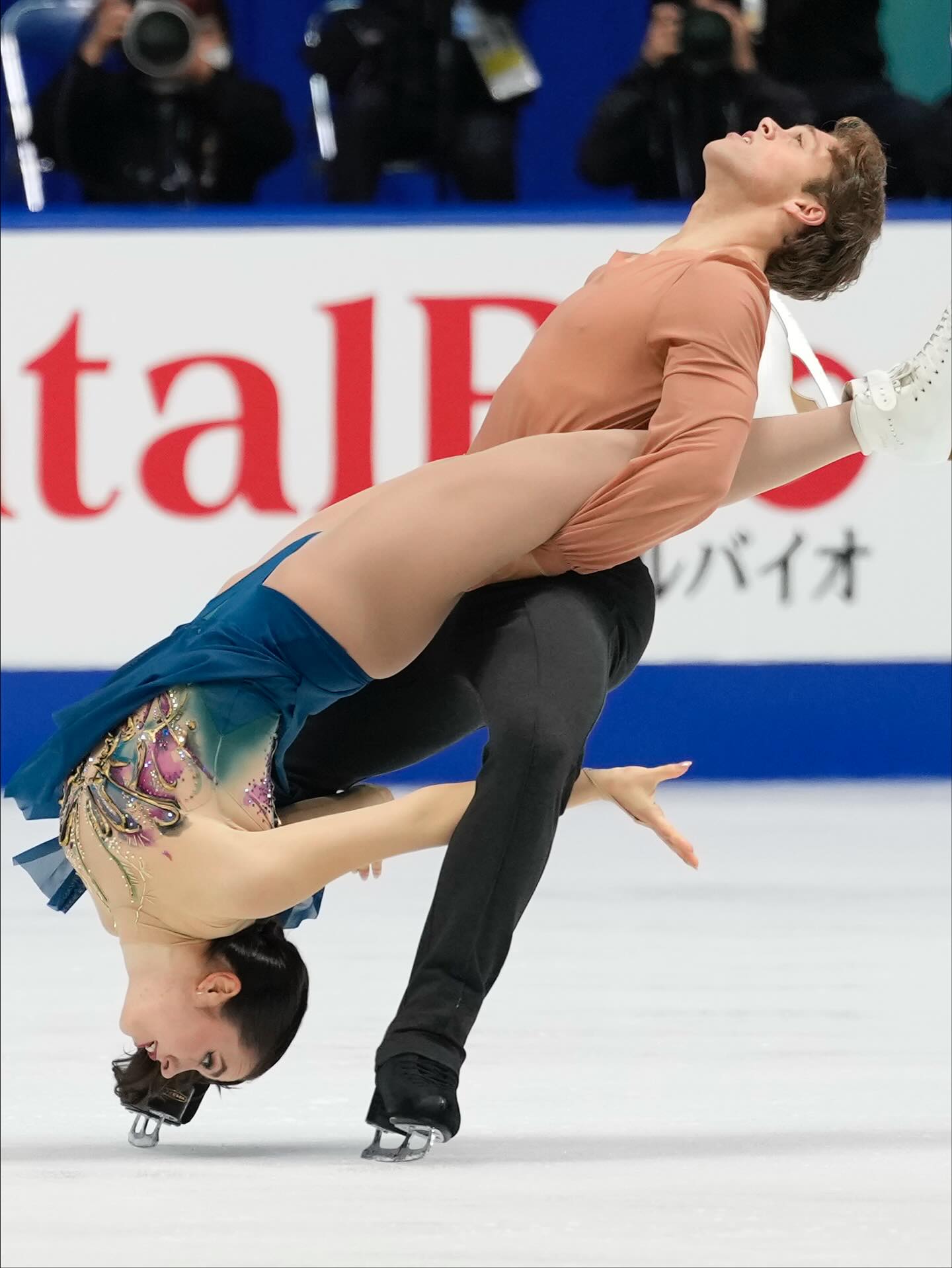 Фигуристы из Великобритании Лайла Фир и Льюис Гибсон (Lilah FEAR – Lewis GIBSON) лидируют после ритм-танца на 4-м этапе Гран-при NHK Trophy в городе Осака, Японии, (81.57).