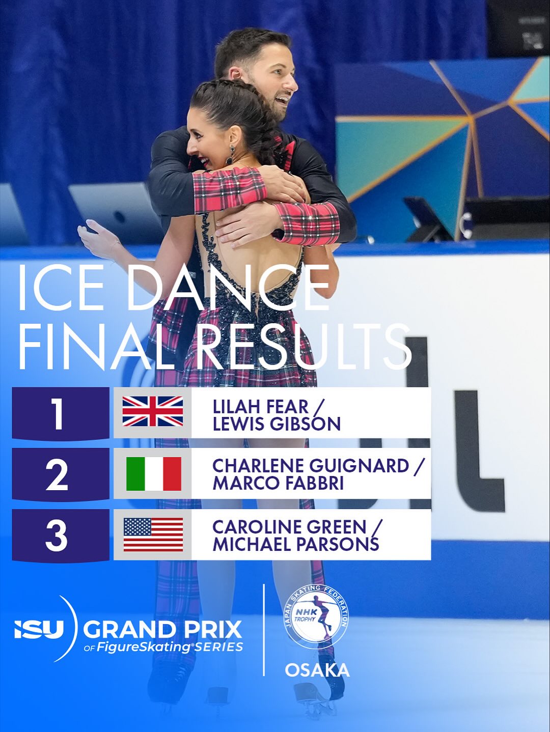 Фигуристы из Великобритании Лайла Фир и Льюис Гибсон (Lilah FEAR Lewis GIBSON) одержали победу в танцах на льду на 4-м этапе Гран-при NHK Trophy в городе Осака, Японии, (205.88 ).