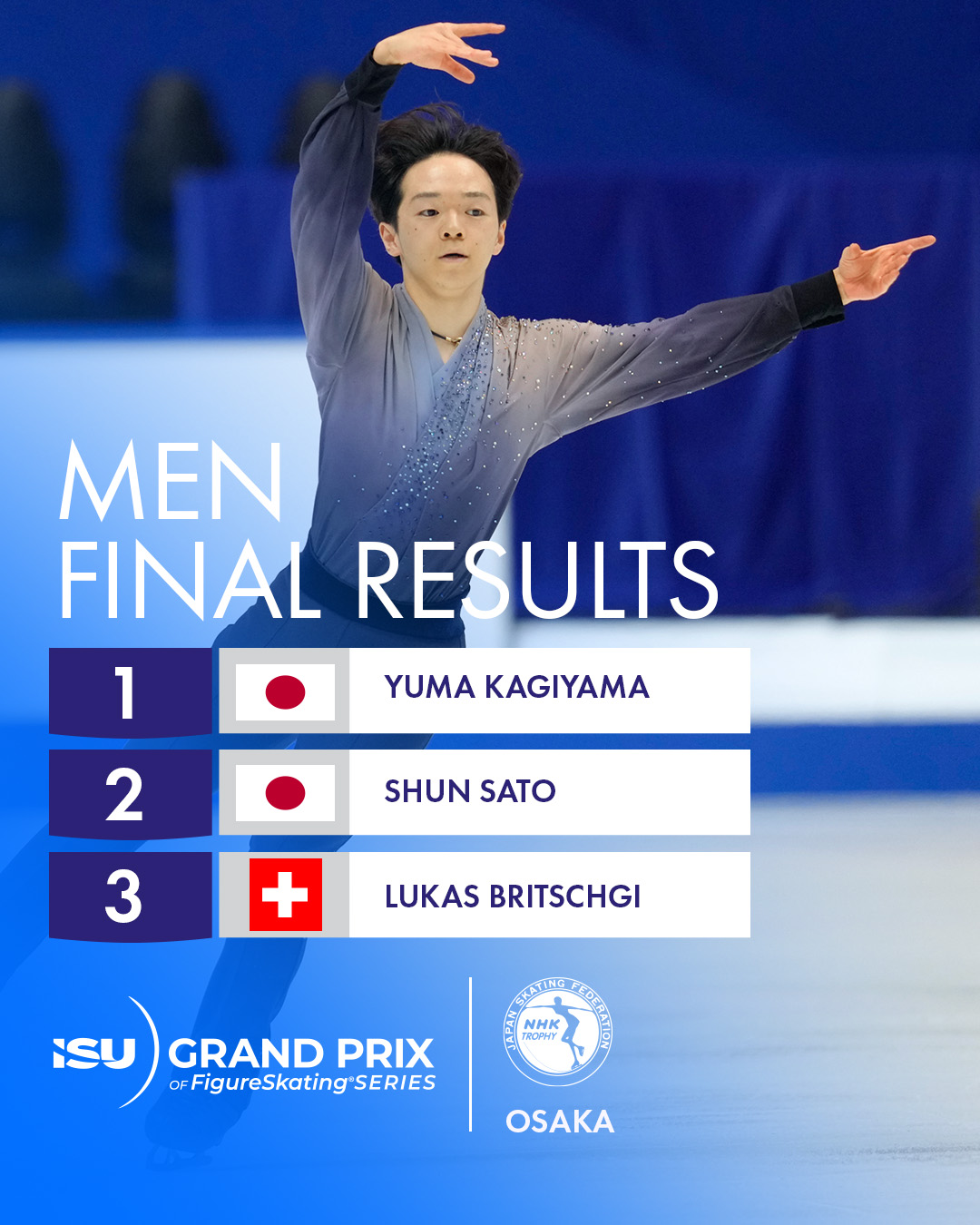 Японский фигурист Юма Кагияма (Yuma KAGIYAMA) победил на 4-м этапе Гран-при NHK Trophy в городе Осака, Японии, (287.24).