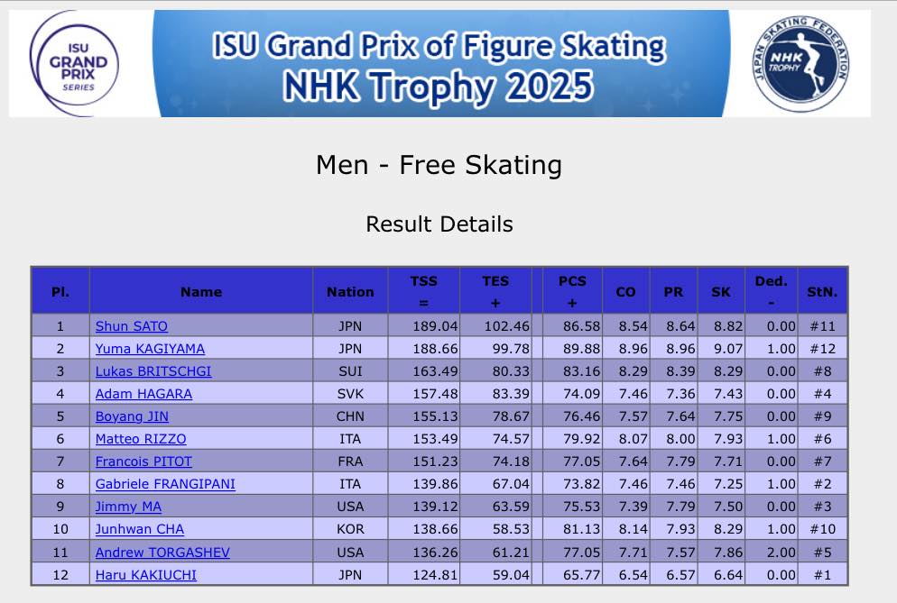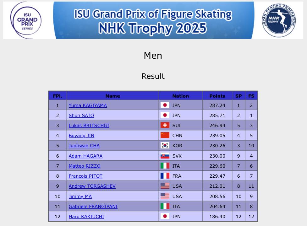 Гран-при, NHK Trophy 2025, Осака, Япония. Мужчины, короткая программа