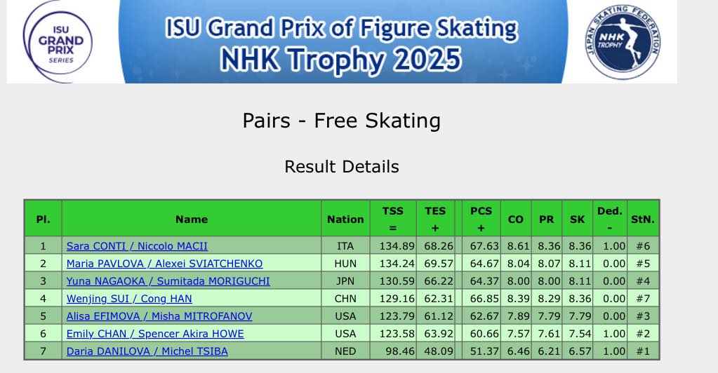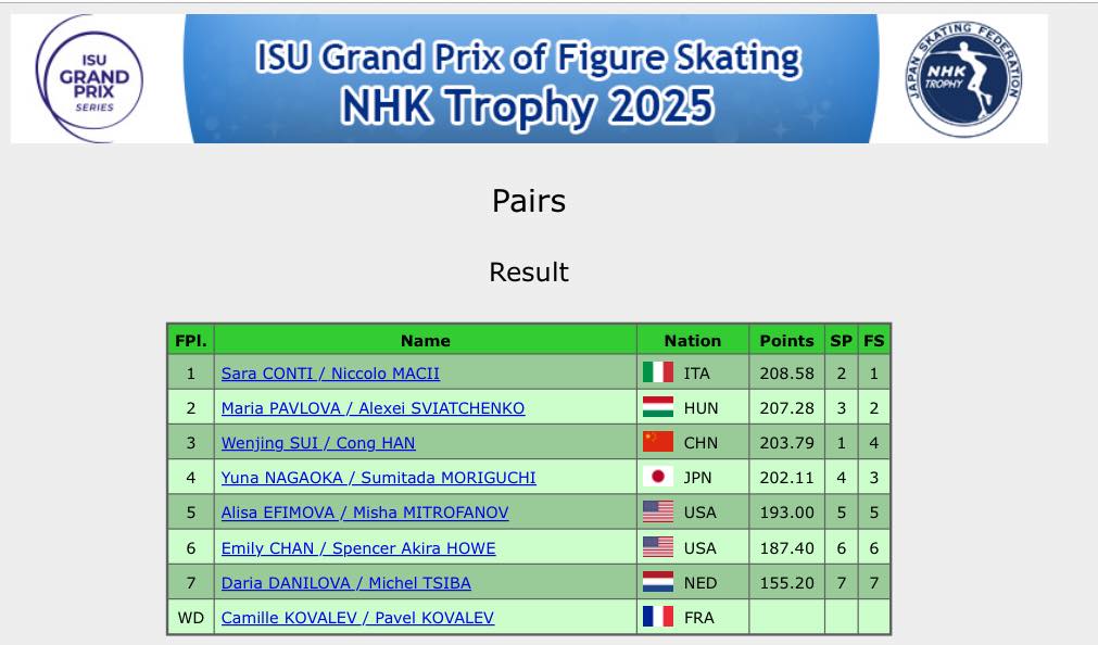 Гран-при, NHK Trophy 2025, Осака, Япония. Пары, короткая программа