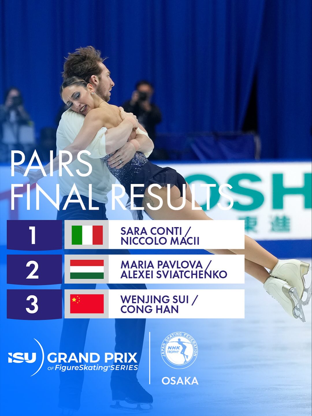 Итальянцы Сара Конти и Никколо Мачии (Sara CONTI / Niccolo MACII), победили на 4-м этапе Гран-при NHK Trophy в городе Осака, Японии, (208.58)